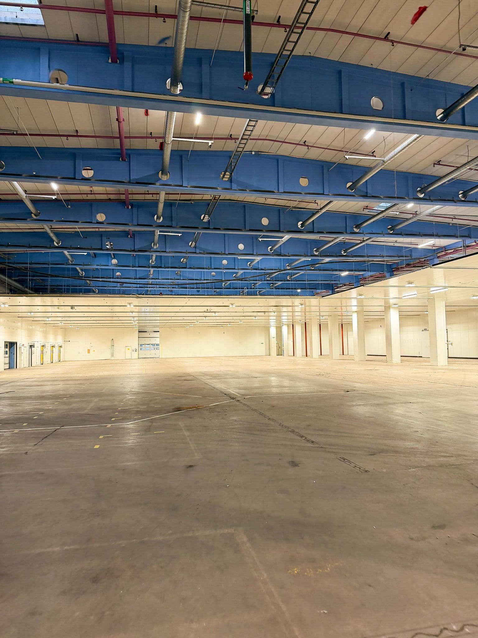 När arbetet väl påbörjades blev det tydligt hur omfattande uppdraget faktiskt var. Lokalen bar spår av en verksamhet som under flera år byggts upp kring kyl- och fryshantering, där tusentals kvadratmeter paneler, ett flertal kylaggregat och omfattande sprinkler- och brandsystem var tätt integrerade med byggnaden. I frysdelen möttes man dessutom av ett tjockt betonggolv i flera lager, med både isolering och rördragningar under ytan – en konstruktion som i många fall hade betraktats som svår att göra något annat med än att riva och forsla bort.