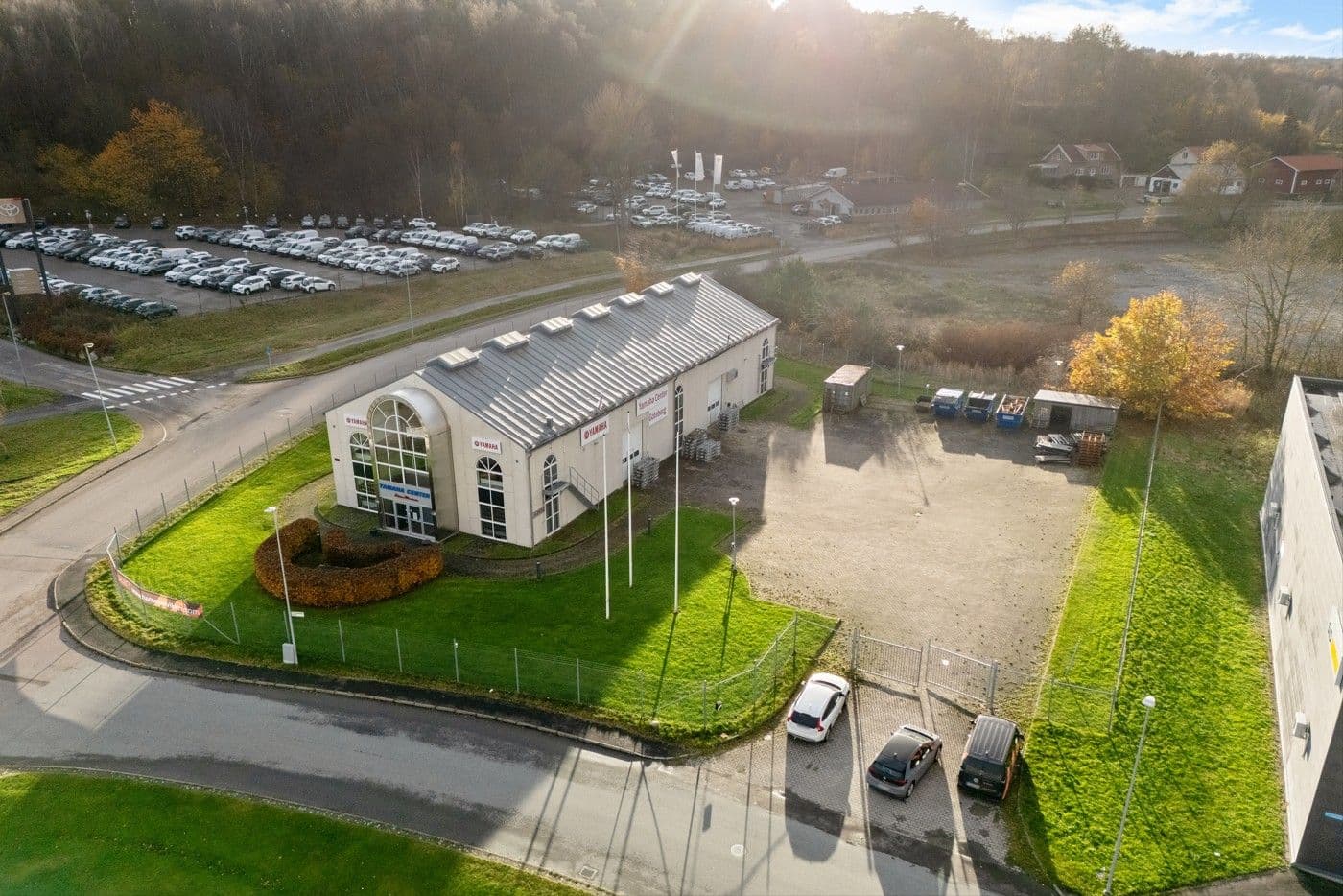 Fastigheten har en inhägnad gård om cirka 1 800 kvm, vilket ger goda möjligheter för uppställning, hantering och parkering. Parkeringsplatser finns både för hyresgäster och besökare.